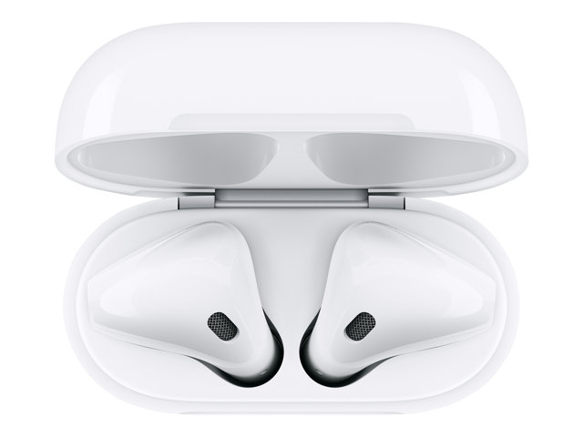 Produktbeskrivning Apple AirPods with Wireless Charging Case 2a generation - True wireless-hörlurar med mikrofon Typ av produkt True wireless-hörlurar - Bluetooth Kompatibilitet iPhone, iPad, iPod, Mac Rekommenderad användning Bärbar elektronik Hörlursmodell Öronknopp Trådlös teknik Bluetooth Ljudutgångsläge Stereo Kontroller Volym, svara/avsluta, nästa/föregående låt Intelligent assistent Siri - Tillbehör