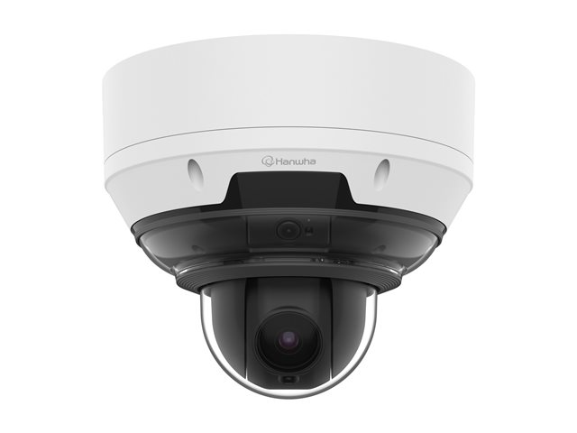 Produktbeskrivning Hanwha Vision WiseNet P PNM-C19183RVTP - nätverksövervakningskamera - kupol Typ av enhet Nätverksövervakningskamera - multi-sensor + pan / tilt - kupol - utomhusbruk, inomhusbruk Ljud Ja: audio through optional I/O box Dimensioner (BxDxH) 25.14 cm x 25.14 cm x 21.2 cm Vikt 4.8 kg Färg Vit, RAL 9003 Anslutningsteknik Kabelanslutning Kamera Färg - Dag&Natt Max upplösning 2592 x 1944 Bildhastighet (max) 30 frames per second Rörelsedetektion Ja Bildsensortyp 1/2.8" - 5 MP Mimimibelysning 0.08 lux - färg - F2.0 - 30 IRE - slutare 1/30 sek.