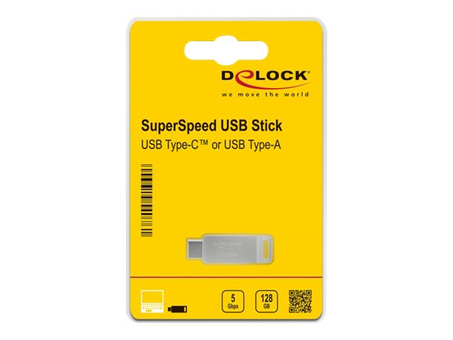 Produktbeskrivning Delock - USB flash-enhet - 128 GB Produkttyp USB flash-enhet Gränssnittstyp USB 3.2 Gen 1 / USB-C Minneskapacitet 128 GB Operativsystem erfordras Microsoft Windows 7 / 8.1 / 10 (32/64 bits), Linux Kernel 3.3 eller senare, Apple macOS Mojave 10.14.3 eller högre, Google Chrome OS 72 eller senare - Nedladdningsbara filer