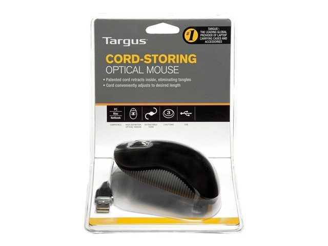 Produktbeskrivning Targus Cord-Storing - mus - USB - svart, grå Typ av enhet Mus Anslutningsteknik Kabelansluten - USB Färg Svart, grå Inriktning Höger- och vänsterhänta Dimensioner (BxDxH) 5.5 cm x 10 cm x 3.5 cm Vikt 70 g Lokalisering Europa Teknik för rörelsedetektering Optisk Antal knappar 3 Rörelseupplösning 1000 dpi Egenskaper Indragbar kabel, scrollhjul Kabellängd 75 cm Operativsystem erfordras Microsoft Windows, Apple MacOS Tillverkarens garanti 2 års garanti - Nedladdningsbara filer