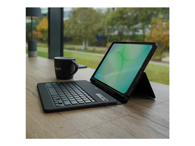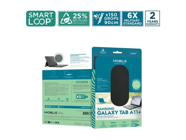 Produktbeskrivning Mobilis Element - tangentbord och foliefodral (foliofodral) - with french bluetooth keyboard - AZERTY - svart Inmatningsenhet Typ av enhet Tangentbord och foliefodral Gränssnitt Bluetooth Inmatningsenhet Inbyggt tangentbord Anslutningsteknik Trådlös Lokalisering och layout AZERTY Färg Svart tangentbord, svart fodral Vikt 322 g Designat för Samsung Galaxy Tab A11+, Tab A9+ - Nedladdningsbara filer