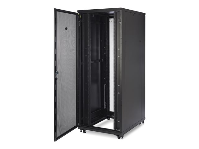 Produktbeskrivning APC NetShelter SV - rack - 42U Produkttyp Rack Racktyp Skåp Förpackningens innehåll Rackutjämningsfötter, 4 nedhållningskonsoler, sidopaneler, framlucka, bakdörr, tak, byggnadsmaskinvara Färg Svart Stativstorlek 19" Höjd (U-format) 42U Dimensioner (BxDxH) 80 cm x 106 cm x 205.7 cm Vikt 130.5 kg Egenskaper Låsbar främre dörr, låsbar bakre dörr, samma nyckel, låsbar sidopanel, hjul Tillverkarens garanti 5 års garanti Designat för P/N: SMT2200I2U-BR, SMT2200RM2UNC, SMT3000RM2UNC, SMT750RM2UC, SMTL1500RM3UC, SMTL1500RMI3UC, SMX2KRMLVNCUS, SRT1000XLA, SRT1500XLA, SRT2200RMXLA, SRT2200RMXLA-NC, SRT2200RMXLAUS, SRT2200XLA, SRT3000RMXLA, SRT3000RMXLA-NC, SRT3000RMXLT-NC, SRT3000XLA, SRT3000XLAUS, SRTL3KRM1UC, SRTL3KRM1UNC - Tillbehör