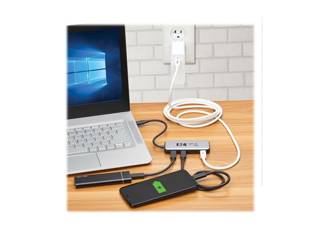Eaton Tripp Lite series 4-Port USB-C Hub, USB 3.2 Gen 2 (10 Gbps), 4x USB-C Ports, 100W PD Charging, Thunderbolt 3 Compatible, Gray
