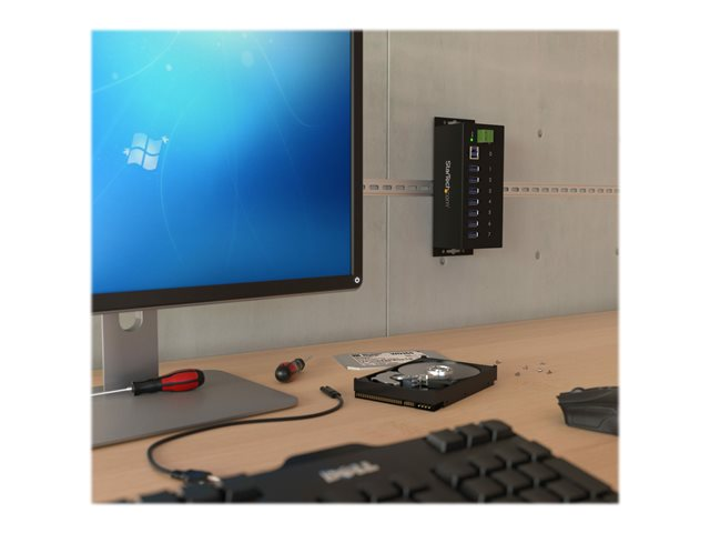 Industriell USB-A-hubb i metall med ESD-skydd och 350 W överspänningsskydd - Monterbar på DIN-skena, vägg eller skrivbord - TAA-kompatibel USB-expansionshubb - hubb - 7 portar