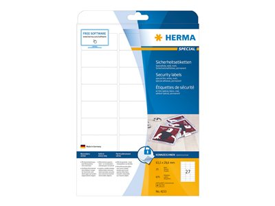 HERMA Special - permanenta självhäftande matta säkerhets-/förslutningsfilmetiketter